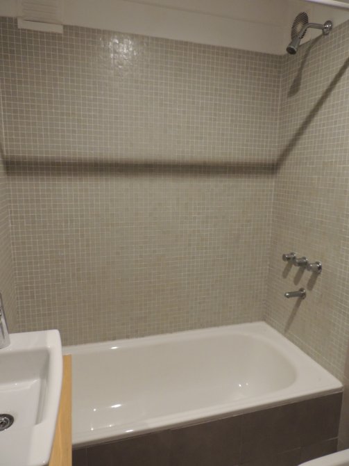 BAÑO. De 1,50 mts. por 2,15 mts. Completo con piso de porcelanato y revestimiento en venecitas.
