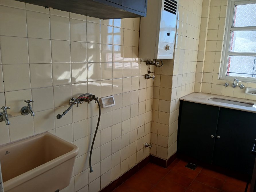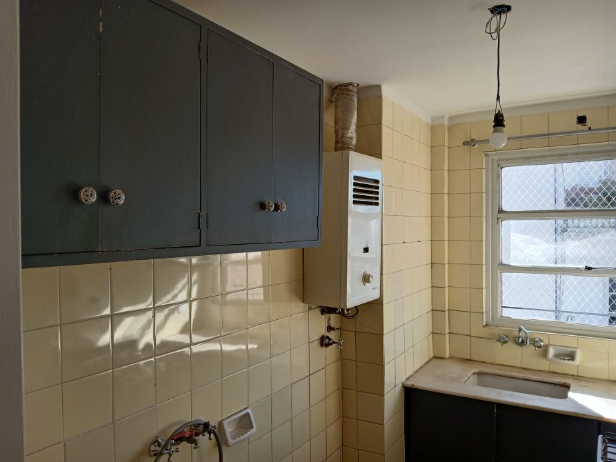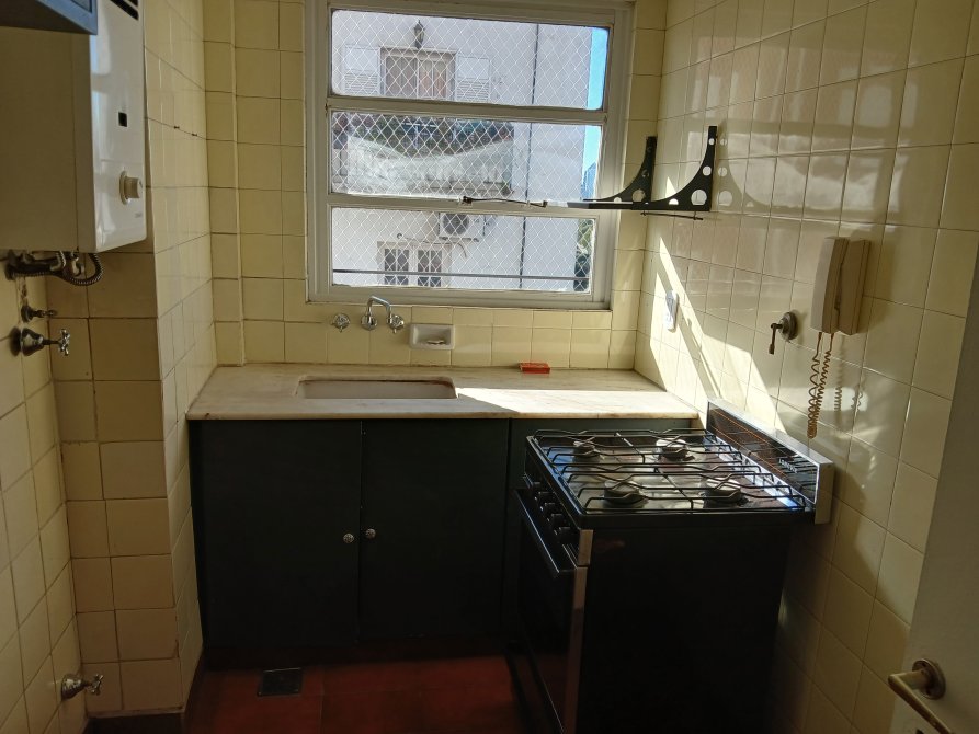 Cocina de 3 x 1,80 con orientación oeste, amplia abertura que garantiza luz y aire. Cuenta con espacio para instalación de lavarropas y tienen pileta de lavar. Amplio placar con estantes y capacidad de guardado.