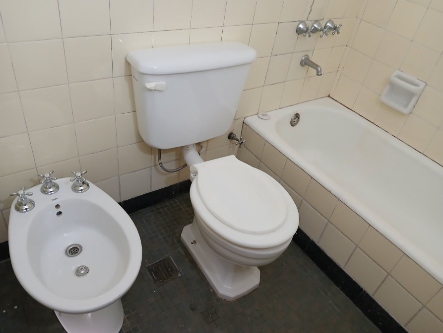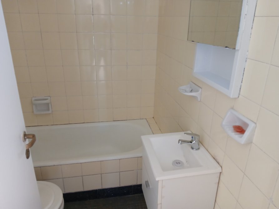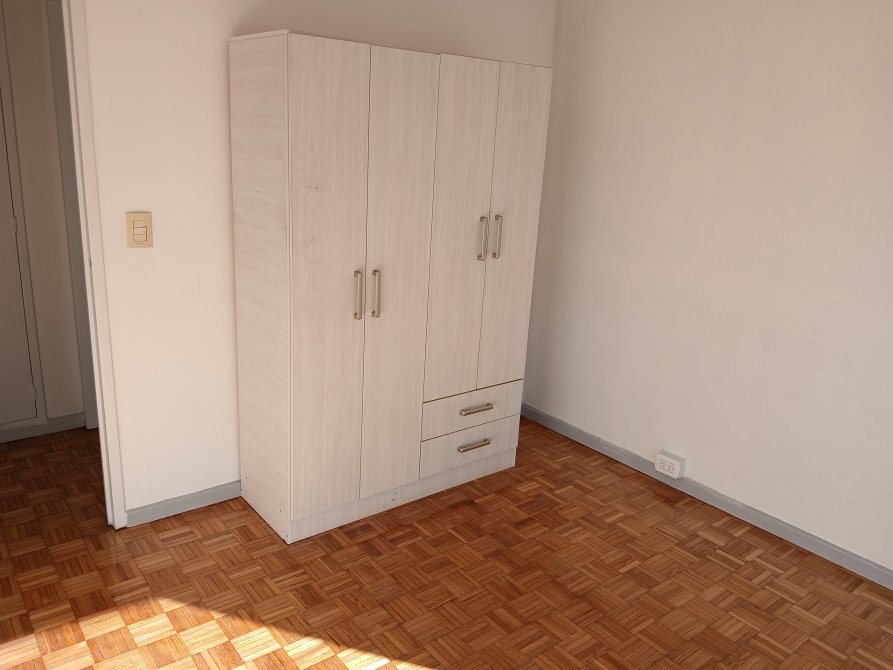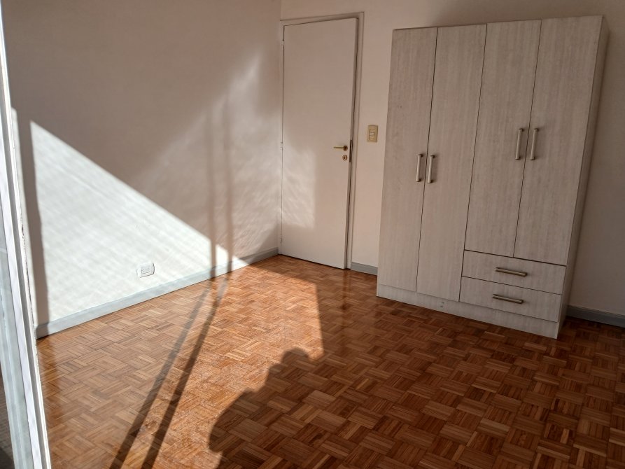 Dormitorio de 3 x 3 con excelente piso de parket y ventana balcón con red de protección. Todo al exterior, balcón de 5 x 1. Cuenta con placard a estrenar en melamina color Pinot Gris. Baño de 2 x 1,60 completo.