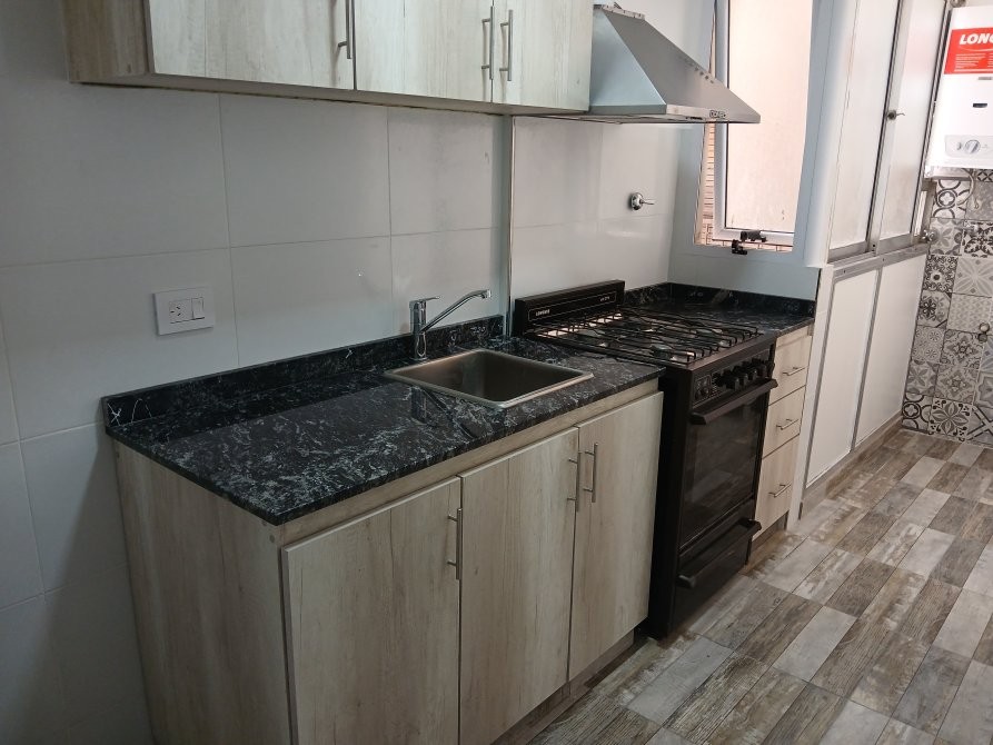 Muebles alto y bajo mesada con luz led, campana acero inoxidable, piso y porcelanato nuevo.