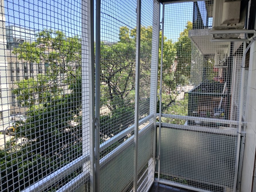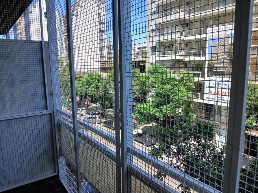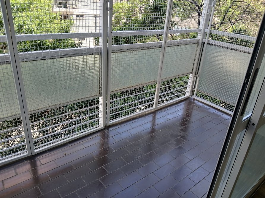 Balcón enrejado de 3,20 x 1,40 con vista abierta.