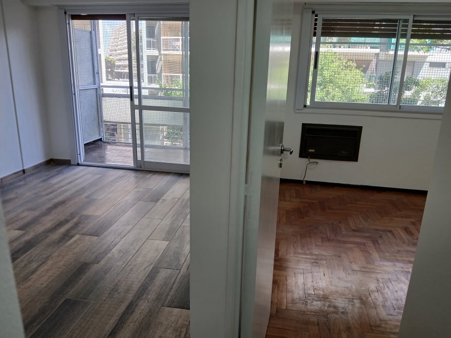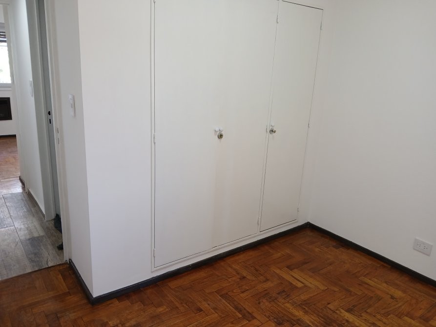 Habitación secundaria al contrafrente de 3 x 3, con piso de parket recién plastificado y placard empotrado reciclado a nuevo.