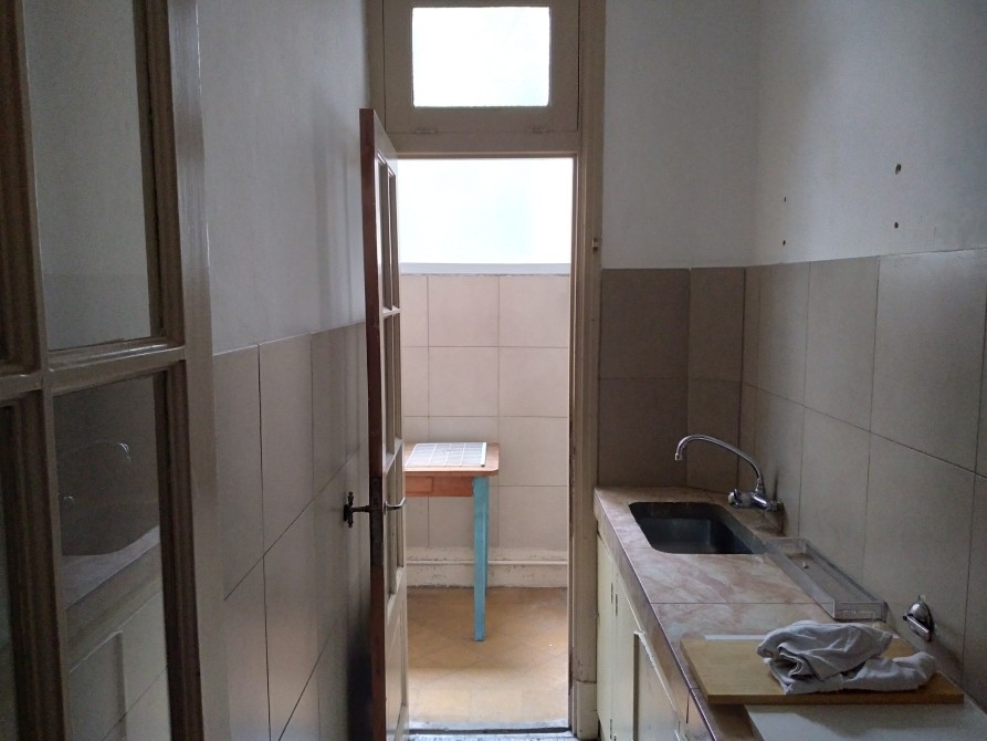 Cocina de 2,30 x 1,20, con alacenas bajo mesada y conexión con lavadero, con mueble de guardado y vitrina, super luminoso de 2,60 x 1,25 con ventana de 2,60 x 1,20 que garantiza aire y luz en lavadero y cocina.